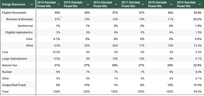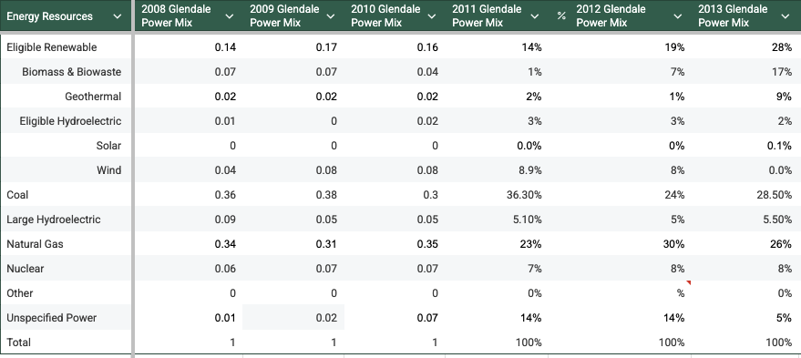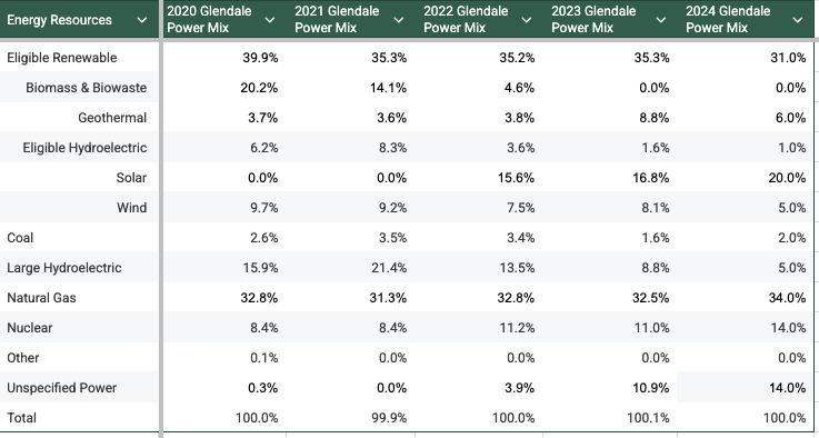 REPORT / 2024 POWER SOURCE DISCLOSURE ANNUAL REPORT (Includes ALL sources of energy for Glendale) / 2024 POWER CONTENT LABEL / Past CA Content Labels from CEC
