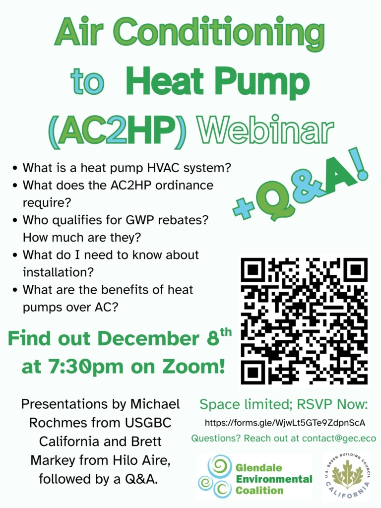 To help educate residents on the newly-passed Air Conditioning to Heat Pump (AC2HP) ordinance, we’re hosting a webinar and Q&A on December 8th at 7:30pm on Zoom.